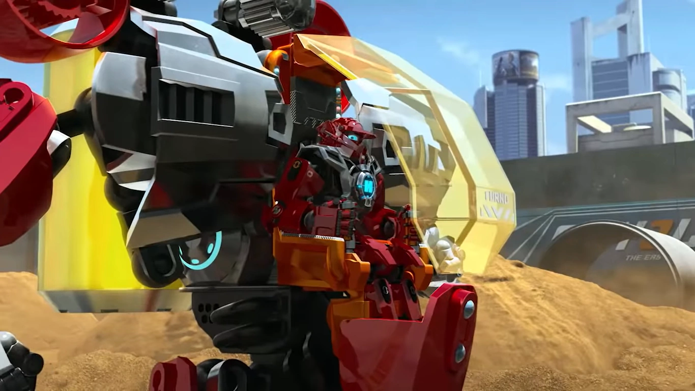 The Jet Machine was constructed by Nathan Evo soon after the Stormer's Freeze Machine using the Remote Builder. Preston Stormer, Rocka and Furno took off in their Battle Machines towards Antropolis City to fight the Beasts.